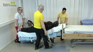 Liggande till sittande; säng, bär-/trappstol, glidskiva, 2P